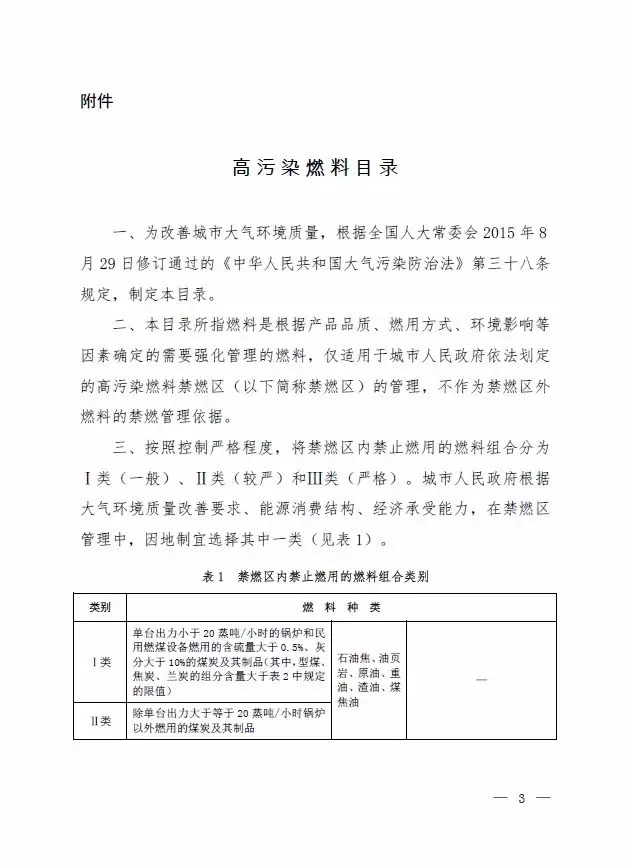 附:高污染燃料目錄