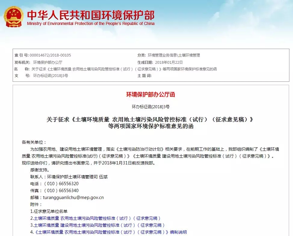 環(huán)保部辦公廳近日發(fā)布關(guān)于征求《土壤環(huán)境質(zhì)量 農(nóng)用地土壤污染風(fēng)險管控標(biāo)準(zhǔn)(試行)(征求意見稿)》等兩項國家環(huán)境保護(hù)標(biāo)準(zhǔn)意見的函