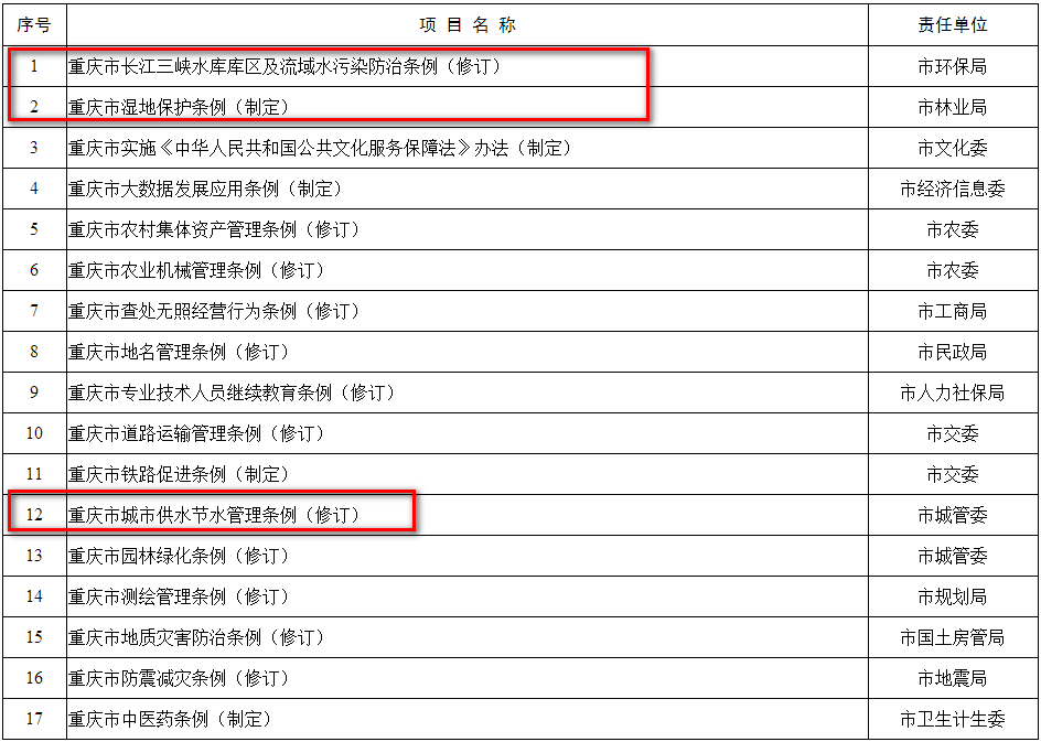 重慶市2018年立法工作計(jì)劃公布,涉及水污染防治、生活垃圾分類、海綿城市建設(shè)等眾多環(huán)保類立法項(xiàng),詳情如下: