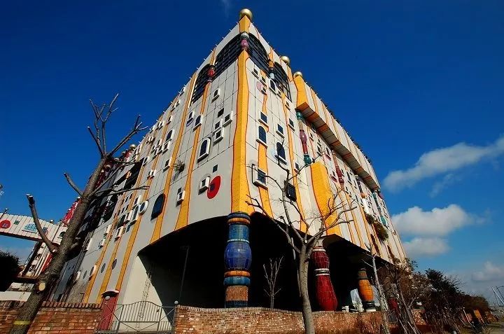 “舞洲工場”的外觀設計出自奧地利著名生態(tài)建筑設計師Friedensreich Hundertwasse。鮮艷的色塊使得這座垃圾廠色彩斑斕,不再給人以冷冰冰的感覺,建筑物外表面紅色與黃色的條紋象征著處理廠的火焰。工廠有著五百多個形狀各異的窗戶,其中八成是用作裝飾。整個建筑被綠植包圍,曲線的建筑設計與植被相映成趣,體現(xiàn)了舞洲垃圾處理廠“融技術(shù)、生態(tài)、藝術(shù)為一體”的口號。