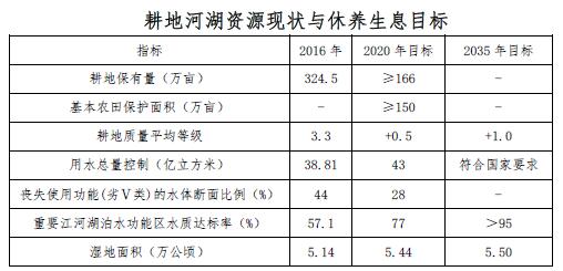 到2020年,耕地數(shù)量穩(wěn)定、質(zhì)量提高,河湖生態(tài)空間有效恢復,濕地面積增加,耕地河湖生態(tài)功能有效改善,資源有效保護和高效利用的政策與技術支撐體系基本建立。到2035年,耕地河湖資源利用與養(yǎng)護全面步入良性循環(huán),資源休養(yǎng)生息制度體系更加完善,形成資源利用高效、生態(tài)系統(tǒng)穩(wěn)定、農(nóng)業(yè)可持續(xù)發(fā)展、水生態(tài)環(huán)境優(yōu)良的新格局,實現(xiàn)人與自然和諧共生。