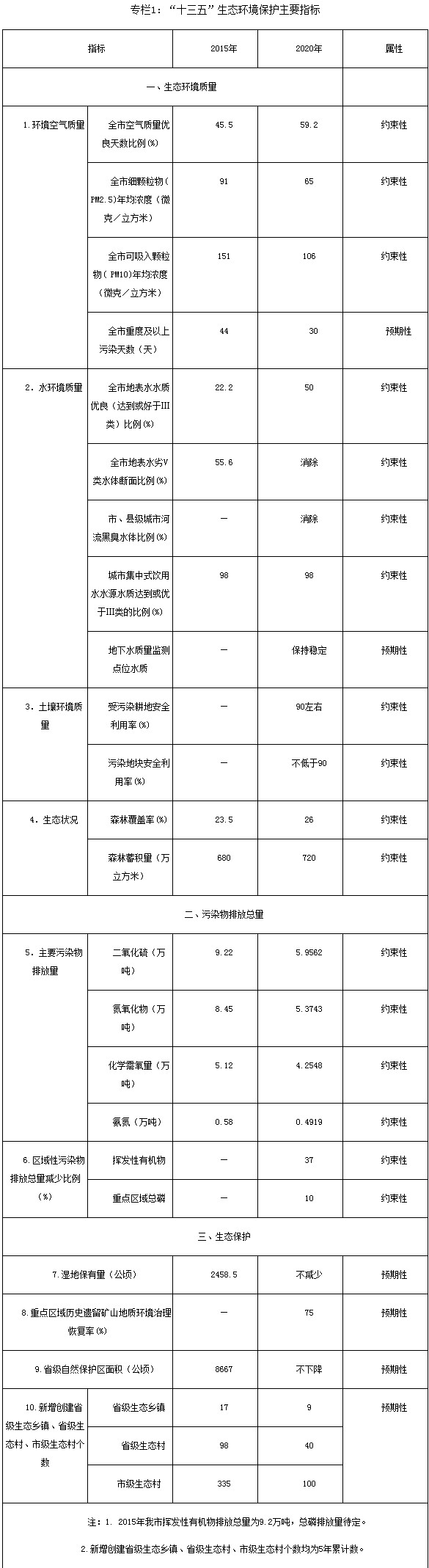 2020年,我市化學(xué)需氧量、氨氮、二氧化硫、氮氧化物排放總量分別控制在4.2548萬噸、0.4919萬噸、5.9562萬噸、5.3743萬噸以內(nèi),比2015年分別下降16.9%、15.2%、35.4%、36.4%,揮發(fā)性有機(jī)物和總磷排放總量比2015年下降37%和10%。