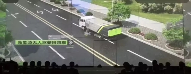 ▲無(wú)人駕駛掃路機(jī)在作業(yè)演示