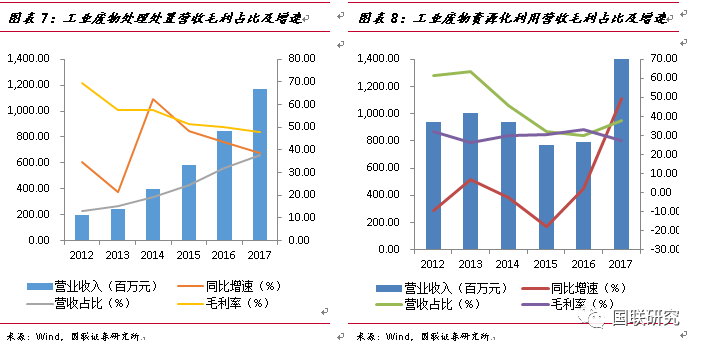 危廢的無害化和資源化為公司收入與毛利的主要來源。2017年,兩項(xiàng)業(yè)務(wù)收入分別實(shí)現(xiàn)11.67億元、11.82億元,同比增長(zhǎng)38.44%、49.33%,合計(jì)占營(yíng)收比為75.78%,比上年提高13.33個(gè)百分點(diǎn);毛利占比分別為47.74%和27.28%。工業(yè)危廢處置業(yè)務(wù)的快速增長(zhǎng)受益于目前危廢處置行業(yè)的市場(chǎng)高景氣度,公司聚焦主業(yè),不斷加大危廢項(xiàng)目拓展力度,產(chǎn)能總規(guī)模及釋放規(guī)模都在穩(wěn)步提升,不斷優(yōu)化戰(zhàn)略布局,加快在珠三角及西南地區(qū)的項(xiàng)目收購,實(shí)現(xiàn)了危廢處置業(yè)務(wù)的快速增長(zhǎng)。