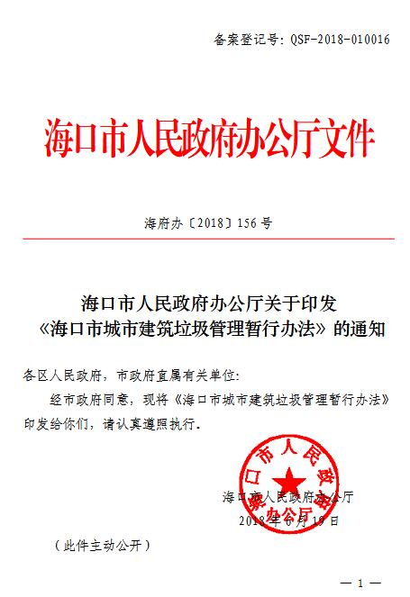 日前???/a>市人民政府辦公廳印發(fā)《海口市城市建筑垃圾管理暫行辦法》(以下簡稱《辦法》),明確要求對建筑垃圾處置實行特許經(jīng)營管理,企業(yè)或個人如果違規(guī)處置將受處罰?!掇k法》從今年9月1日起施行,有效期兩年。