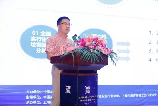 2018年8月31日,由中國戰(zhàn)略性新興產業(yè)環(huán)保聯(lián)盟主辦的“環(huán)衛(wèi)市場發(fā)展的機遇與挑戰(zhàn)—中國環(huán)聯(lián)2018年(第二屆)技術論壇”在上海順利召開。上海市綠化和市容管理局副局長唐家富在開幕儀式上致辭并做了“打造生活垃圾全程分類體系”的精彩分享。