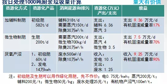 廚余制肥和產(chǎn)沼資源化價(jià)值比較,不考慮運(yùn)行補(bǔ)貼、運(yùn)行電費(fèi)、人工等成本,僅從大宗消耗品支出及產(chǎn)品產(chǎn)出角度分析,厭氧產(chǎn)沼可以獲得較大收益,制肥沒(méi)有收益,厭氧產(chǎn)沼資源化效果明顯,且最大限度固渣減量。