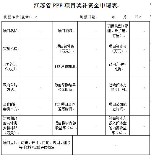 (二)PPP項(xiàng)目獎(jiǎng)補(bǔ)資金申請(qǐng)表(見附表);