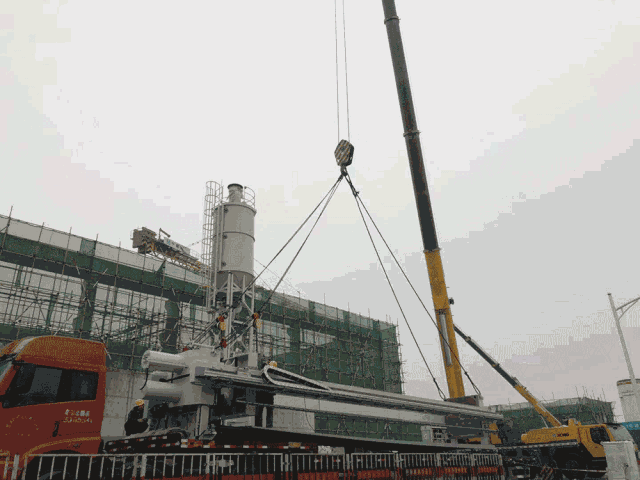 2018年11月4日,突如其來的惡劣天氣環(huán)境,對吊裝和施工造成了很大的影響。在此條件下,光大環(huán)保積極組織施工,雇傭一臺240噸吊車,從早上6點至晚上18點,每位工作人員堅守自己的崗位,順利將包含兩臺大型壓濾機在內(nèi)的共10件設(shè)備全部安裝就位,得到了甲方和監(jiān)理的一致認(rèn)可。
