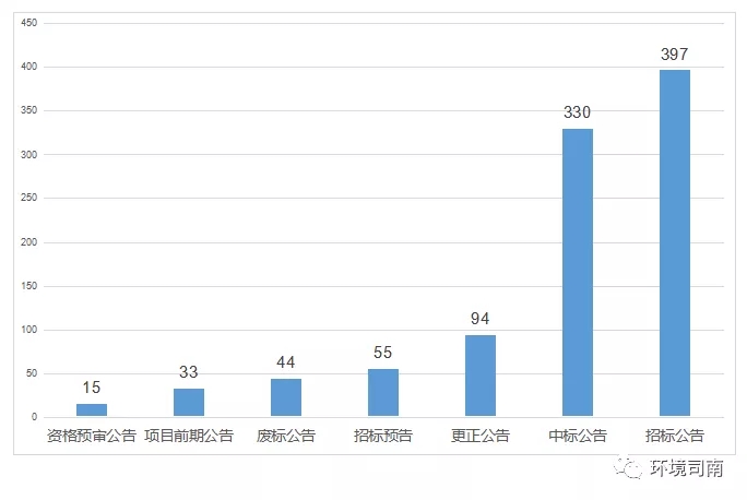 11月上旬(11月1日-10日)全國各地共發(fā)布環(huán)衛(wèi)運營類項目公開招標采購信息968個,其中:項目前期公告33個,招標預(yù)告55個,招標公告397個,資格預(yù)審公告15個,更正公告94個,中標公告330個,廢標及流標公告44個。