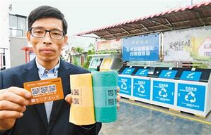 村民可將紙張、塑料、金屬、玻璃等可回收垃圾分類裝進(jìn)橘黃色二維碼垃圾袋,或打包貼上二維碼,掃描后投放至專用垃圾箱,機(jī)器自動(dòng)稱重,核算出價(jià)格,等垃圾回收工作人員分揀確認(rèn)之后,按不同類別向村民返還積分,積分還可到指定地點(diǎn)兌換相應(yīng)的生活用品。何鵬說,有了這些激勵(lì)政策,每位村民對(duì)垃圾分類都非常認(rèn)真。