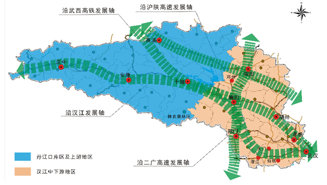 漢江生態(tài)經(jīng)濟(jì)帶空間開(kāi)發(fā)格局示意圖