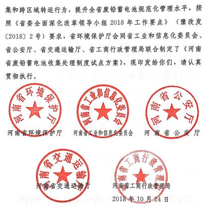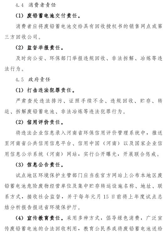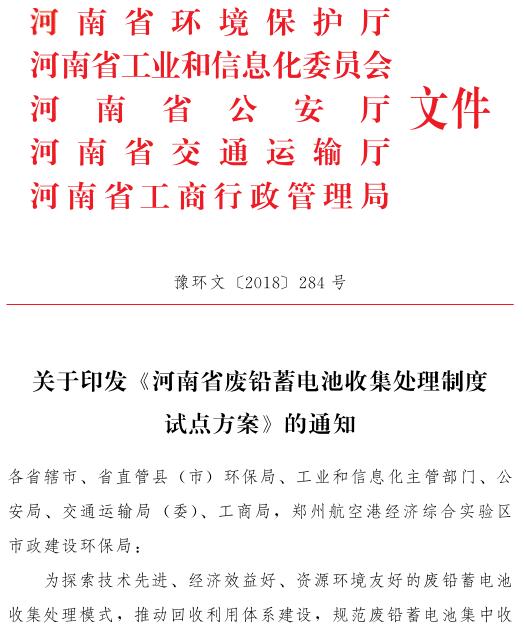 河南省廢鉛蓄電池收集處理制度試點(diǎn)方案