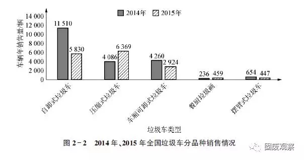 2015年全國垃圾車分品種銷售情況