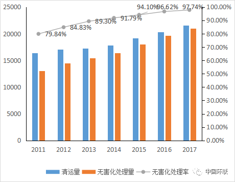 生活垃圾清運量逐年增長,垃圾焚燒漸成主流隨著我國城鎮(zhèn)化進程的推進,城市生活垃圾清運量逐年增長,2016 年生活垃圾清運量已經(jīng)達到2.70 億噸,其中城市生活垃圾清運量2.03 億噸??h城生活垃圾清運量0.67 億噸,并在以每年4%-5%的增速逐年攀升。根據(jù)2018年中國統(tǒng)計年鑒,2017年城市生活垃...