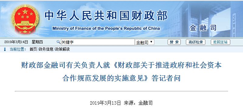 文章導(dǎo)讀近日,財(cái)政部印發(fā)《關(guān)于推進(jìn)政府和社會(huì)資本合作規(guī)范發(fā)展的實(shí)施意見》(以下簡稱《實(shí)施意見》)。財(cái)政部金融司有關(guān)負(fù)責(zé)人就《實(shí)施意見》有關(guān)情況回答了記者的提問。來源:財(cái)政部問:請介紹一下出臺《實(shí)施意見》的背景和主要目的?答:推廣政府和社會(huì)資本合作(PPP)模式,引導(dǎo)社會(huì)資本參與公共服務(wù)供給,是黨中央...