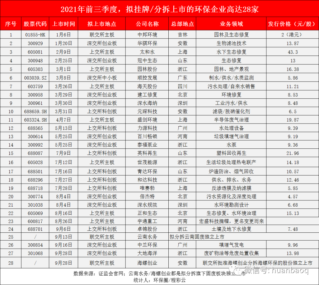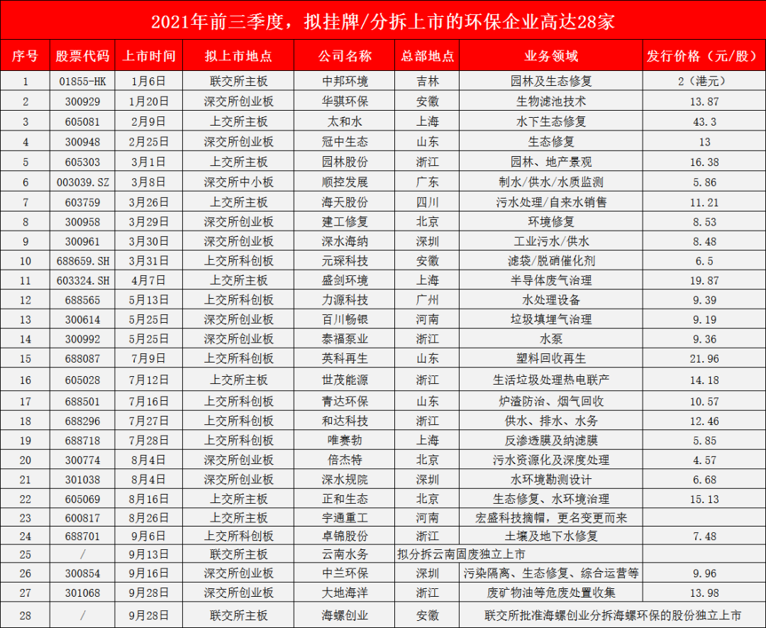 文章導(dǎo)讀十四五開(kāi)局,已經(jīng)給不少環(huán)保企業(yè)判了死緩,十五五開(kāi)局或許就是斬首的時(shí)刻,到時(shí)候沒(méi)有真本事的上市環(huán)企會(huì)更難受,尤其是帶病上市的,出局或許更快?!敖刂沟?月28日,今年前9個(gè)月掛牌/擬分拆上市的環(huán)企已達(dá)28家,不僅遠(yuǎn)超有環(huán)保IPO大年的2020年,更是突破歷年上市數(shù)量的最大值,再次刷新歷史紀(jì)錄。”...