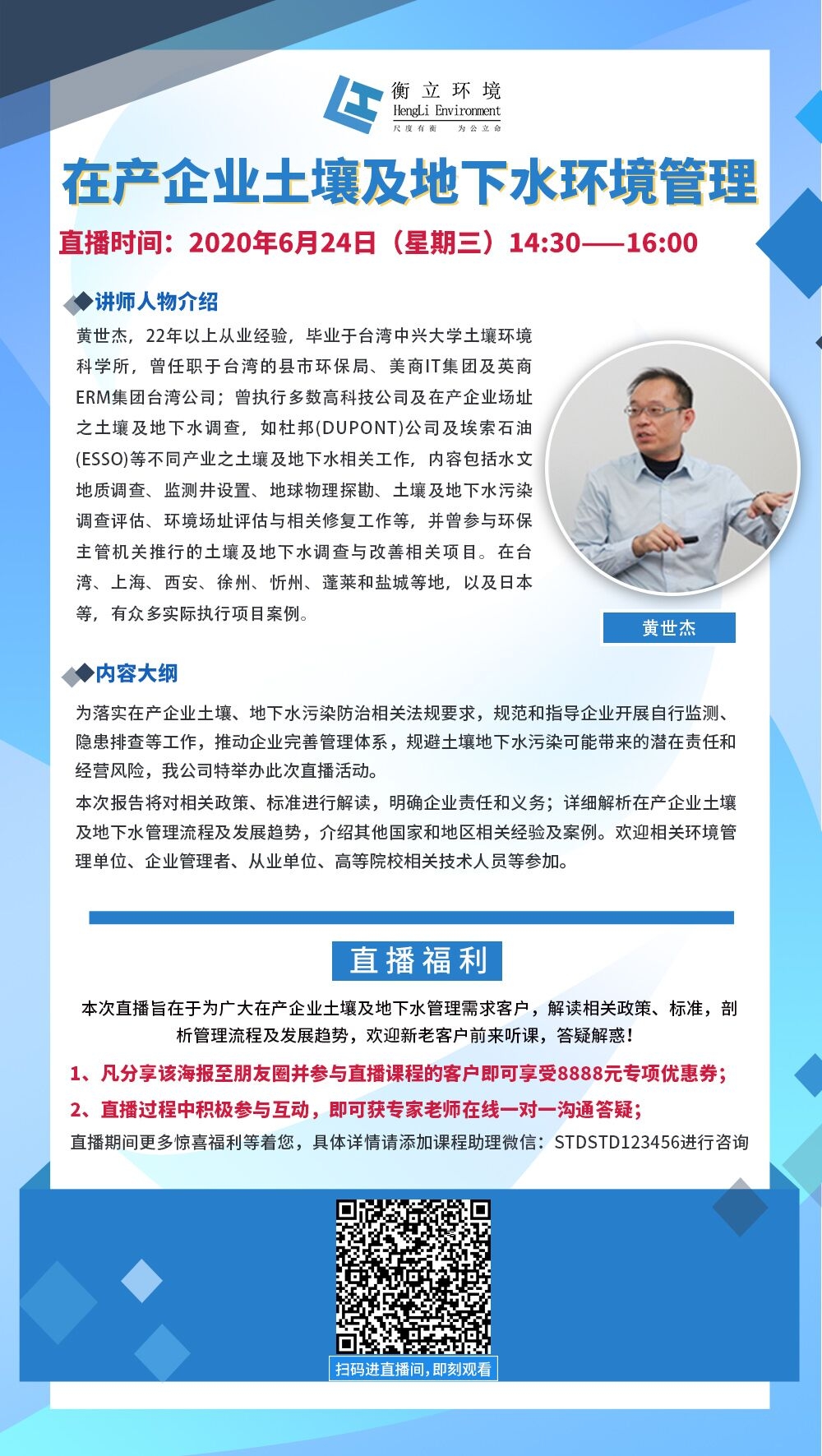 導(dǎo)讀 為落實(shí)在產(chǎn)企業(yè)土壤、地下水污染防治相關(guān)法規(guī)要求,規(guī)范和指導(dǎo)企業(yè)開展自行監(jiān)測、隱患排查等工作,推動(dòng)企業(yè)完善管理體系,規(guī)避土壤地下水污染可能帶來的潛在責(zé)任和經(jīng)營風(fēng)險(xiǎn),我司特舉辦此次直播活動(dòng)。 本次報(bào)告將對(duì)相關(guān)政策、標(biāo)準(zhǔn)進(jìn)行解讀,明確企業(yè)責(zé)任和義務(wù);詳細(xì)解析在產(chǎn)企業(yè)土壤及地下水管理流程及發(fā)展趨勢,介...