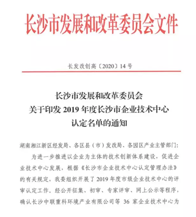 近日,長沙市發(fā)展和改革委員會公布了2019年度長沙市企業(yè)技術(shù)中心認(rèn)定名單的通知,盈峰環(huán)境旗下全資子公司長沙中聯(lián)重科環(huán)境產(chǎn)業(yè)有限公司榮登榜首,成為長沙市企業(yè)技術(shù)與產(chǎn)業(yè)創(chuàng)新平臺基地。我司張斌博士被長沙市發(fā)展和改革委員會聘任為長沙市級企業(yè)技術(shù)中心主任,劉權(quán)先生被長沙市發(fā)展和改革委員會聘任為長沙市級企業(yè)技術(shù)...