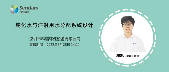 5月26日下午14:00,由凈得瑞技術(shù)直播主講人鄧凱為大家?guī)?lái)的《純化水與注射用水分配系統(tǒng)設(shè)計(jì)》主題直播,將在制藥網(wǎng)、環(huán)保網(wǎng)及凈得瑞微信視頻號(hào)同步開(kāi)播。圖一 《純化水與注射用水分配系統(tǒng)設(shè)計(jì)》點(diǎn)擊圖片進(jìn)入直播間 本次直播內(nèi)容介紹: 1、品牌介紹——主營(yíng)產(chǎn)品、系統(tǒng)服務(wù) 2、法規(guī)要...