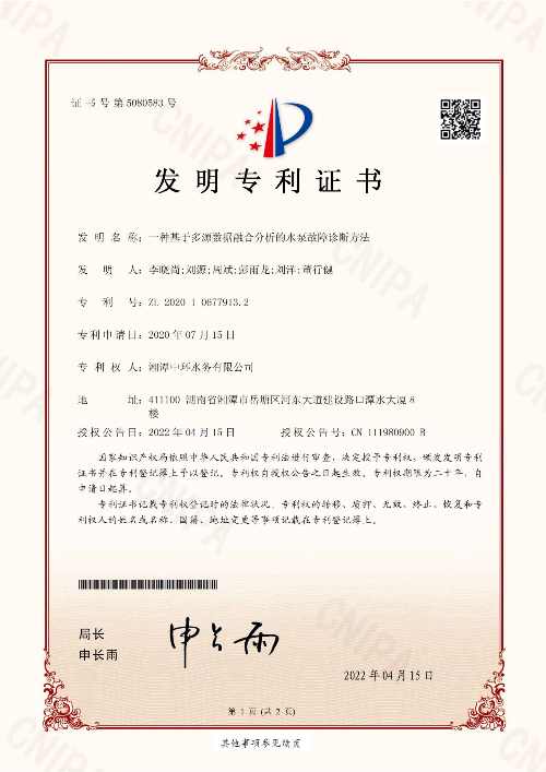 近日,依托中環(huán)水務(wù)牽頭承擔(dān)的2020年度集團公司重大科技創(chuàng)新項目《智能水廠整體工藝方案》與《生態(tài)型村鎮(zhèn)污水處理技術(shù)工藝包》的技術(shù)成果,“一種基于多源數(shù)據(jù)融合分析的水泵故障診斷方法”和 “一種蠕蟲床化糞池”兩項發(fā)明專利獲得國家知識產(chǎn)權(quán)局授權(quán)。 &ldqu...