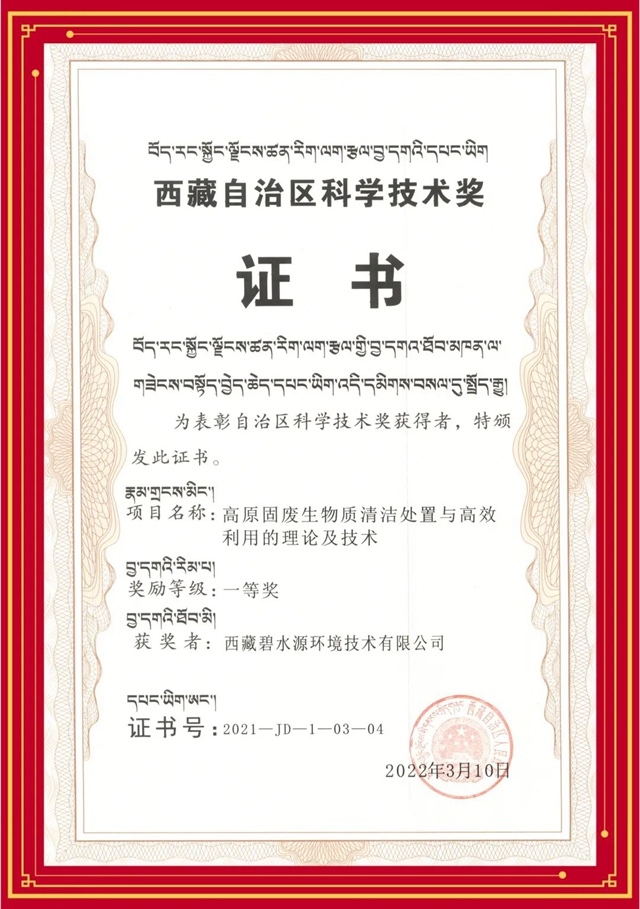 近日,高科技環(huán)保企業(yè)碧水源控股子公司西藏碧水源環(huán)境技術(shù)有限公司(以下簡(jiǎn)稱(chēng)“西藏碧水源”)參與的科研項(xiàng)目《高原固廢生物質(zhì)清潔處置與高效利用的理論及技術(shù)》獲西藏自治區(qū)人民政府的通報(bào)表?yè)P(yáng),被授予2021年度西藏自治區(qū)科學(xué)技術(shù)獎(jiǎng)一等獎(jiǎng)! 為深入貫徹習(xí)近平總書(shū)記關(guān)于科技創(chuàng)新、西藏工作的...