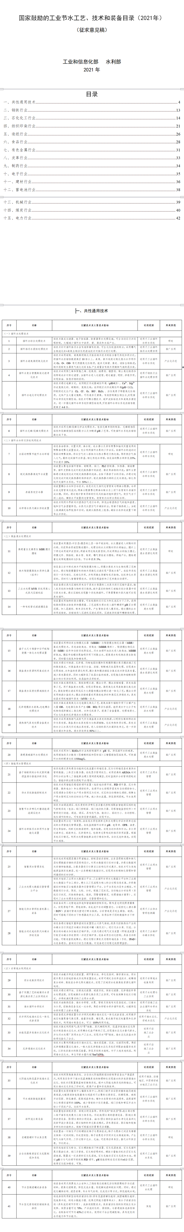 《國(guó)家鼓勵(lì)的工業(yè)節(jié)水工藝、技術(shù)和裝備目錄(2021年)》公示 根據(jù)《關(guān)于征集國(guó)家工業(yè)節(jié)水工藝、技術(shù)和裝備的通知》(工信廳聯(lián)節(jié)〔2021〕65號(hào))要求,經(jīng)企業(yè)申報(bào)、省級(jí)工業(yè)和信息化主管部門(mén)及有關(guān)行業(yè)協(xié)會(huì)和中央企業(yè)推薦、專家評(píng)審等,工業(yè)和信息化部、水利部共同組織編制了《國(guó)家鼓勵(lì)的工業(yè)節(jié)水工藝、技術(shù)和裝備...
