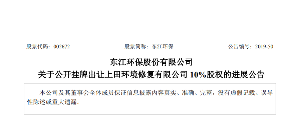 今日,中國環(huán)聯(lián)網(wǎng)獲悉,東江環(huán)保(00895)發(fā)布公告,2018年12月24日,公司第六屆董事會第二十六次會議審議通過了《關于擬公開掛牌出讓上田環(huán)境修復有限公司10%股權的議案》,公司董事會同意通過公開掛牌方式出讓公司持有的上田環(huán)境修復有限公司10%股權,掛牌底價為人民幣2500萬元。根據(jù)進展,光大環(huán)...