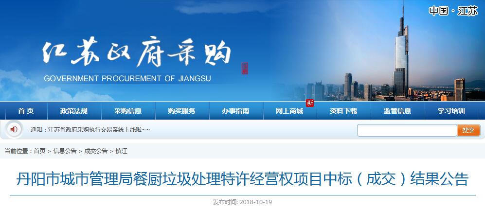 日前,江蘇政府采購(gòu)網(wǎng)發(fā)布了丹陽(yáng)市城市管理局特許經(jīng)營(yíng)權(quán)項(xiàng)目中標(biāo)(成交)結(jié)果公告,采購(gòu)方式為單一來(lái)源,成交供應(yīng)商為中國(guó)有限公司,成交金額:貳佰貳拾捌元整/噸(¥228.00/噸)。詳情如下:一、采購(gòu)人名稱:丹陽(yáng)市城市管理局二、采購(gòu)項(xiàng)目名稱:丹陽(yáng)市城市管理局餐廚垃圾處理特許經(jīng)營(yíng)權(quán)項(xiàng)目三、項(xiàng)目編號(hào)...