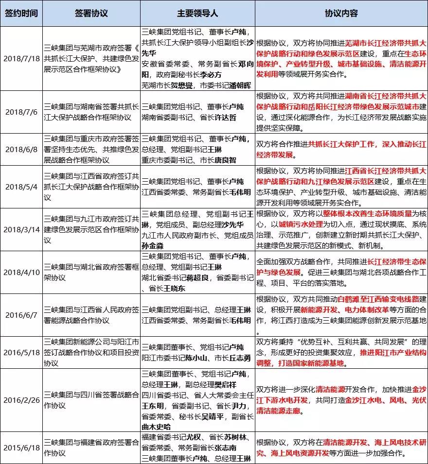 中國(guó)長(zhǎng)江有限公司可以說(shuō)是“明星企業(yè)”了,此前與5大建筑央企紛紛簽約。今天我們來(lái)扒一扒三峽集團(tuán)這些年簽過(guò)的協(xié)議,這些協(xié)議后續(xù)推進(jìn)情況又如何了?(轉(zhuǎn)載自:基建通 作者:槑槑 內(nèi)容來(lái)源:三峽小微)一、地企合作 搶占市場(chǎng)先機(jī)根據(jù)這些協(xié)議,我們可以發(fā)現(xiàn),今年以來(lái)湖北省、江西省、重慶市、湖南省、安徽省等5個(gè)省市...
