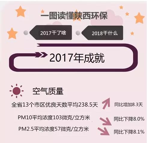 省2017年環(huán)保都做了些什么?、、環(huán)保督察等方面取得了哪些成果?2018年目標(biāo)為何?下圖帶你讀懂陜西環(huán)保2017年成果與2018年目標(biāo)。來(lái)源:陜西環(huán)保